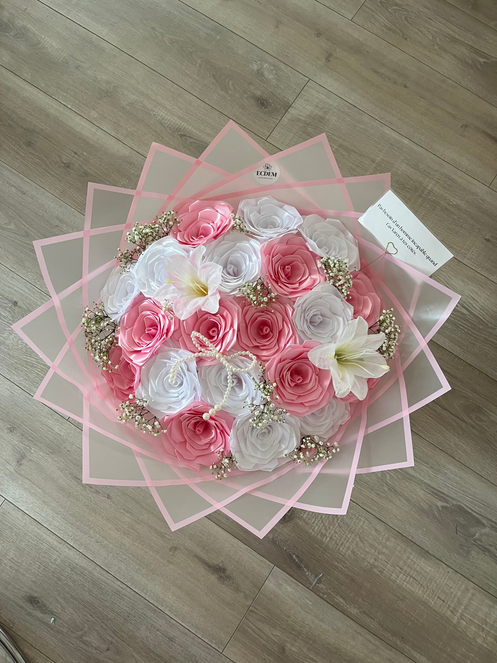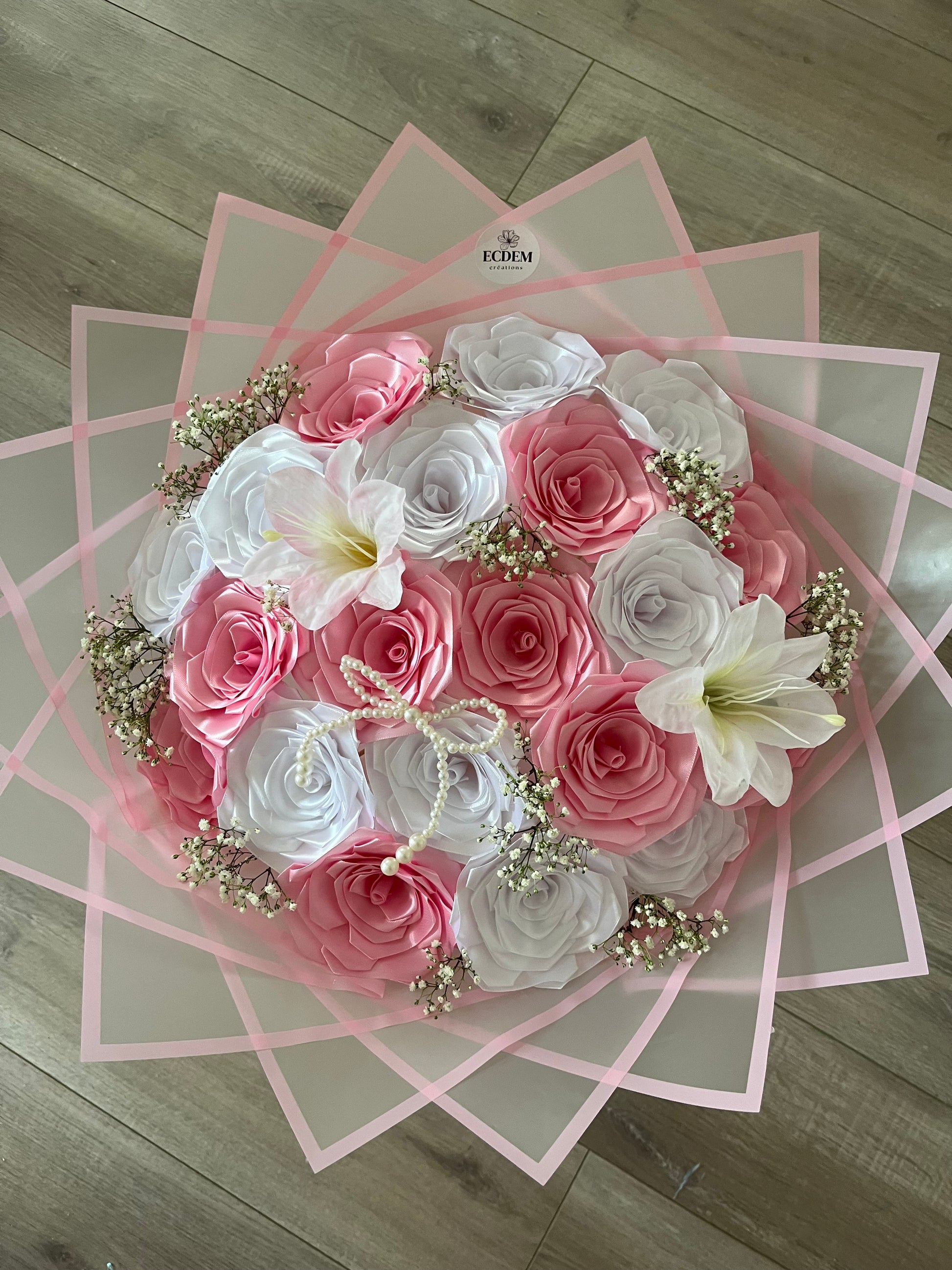 Laissez-vous séduire par le bouquet Quartz, une harmonie de roses rose rose et blanches, subtilement arrangées pour apporter douceur et éclat à votre intérieur. Idéal pour tous vos événements ou pour offrir un cadeau mémorable.