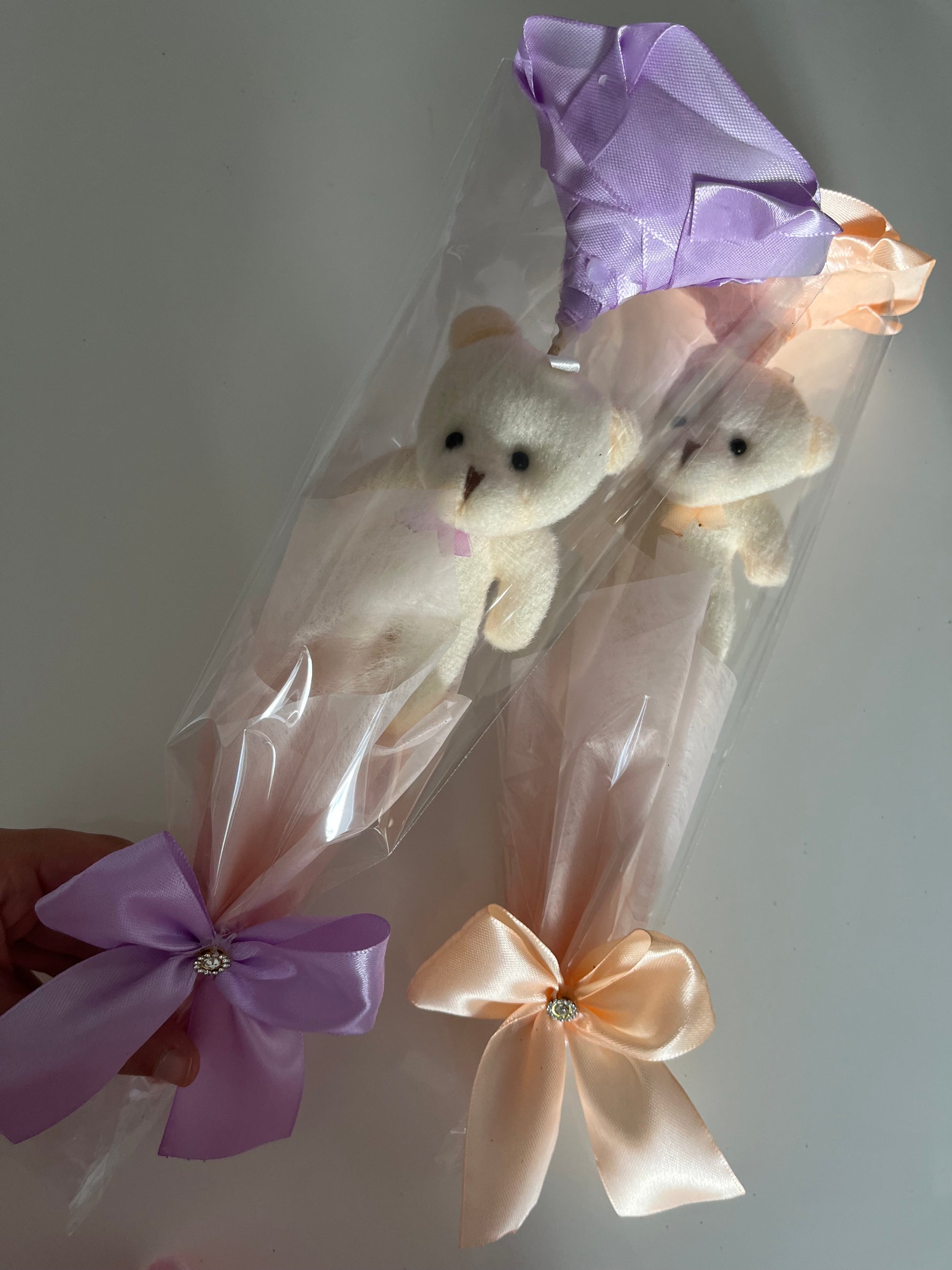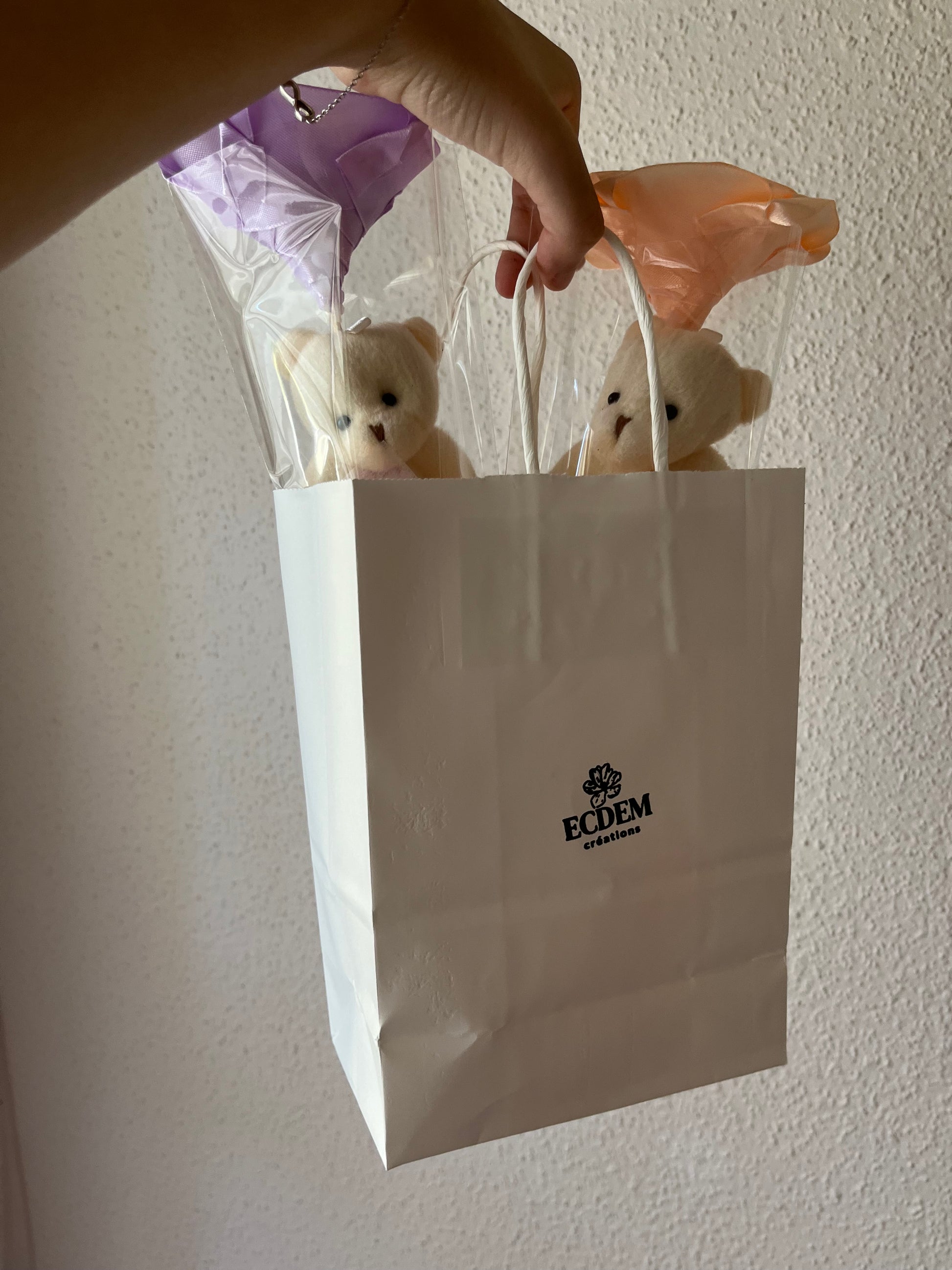 Cet adorable ourson en peluche est accompagné d’une rose éternelle, symbole d’un amour qui ne s’efface pas, le tout présenté avec son sac cadeau raffiné.